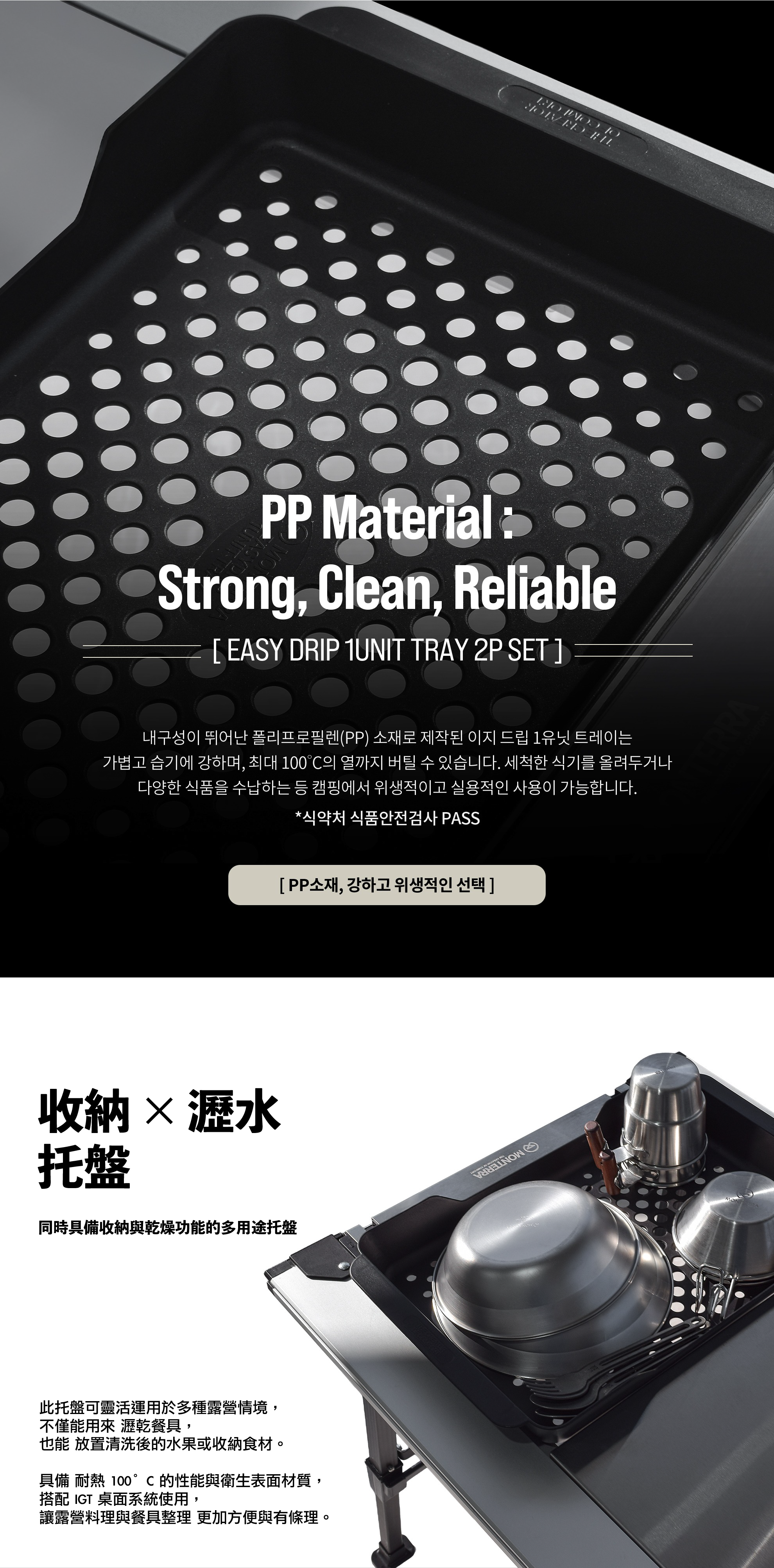 採用 耐用性優異的聚丙烯(PP)材質 製成的 Easy Drip 1Unit Tray,
