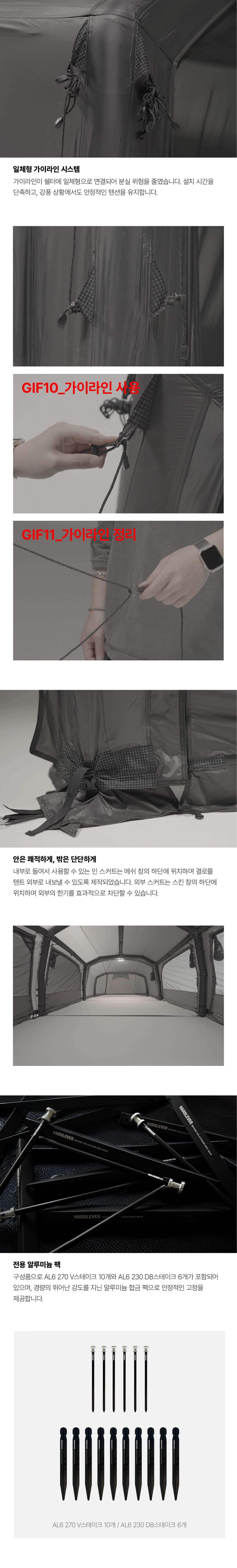 外帳使用 N6 40D Ripstop 尼龍布料,搭配矽膠與 PEU 防水塗層,兼具輕量、耐用與防水性能。前後可拆式網門、全開式前門與爐具煙囪孔設計,讓使用者能依季節與天候自由調整通風與保暖,從夏季到冬季皆能舒適使用。