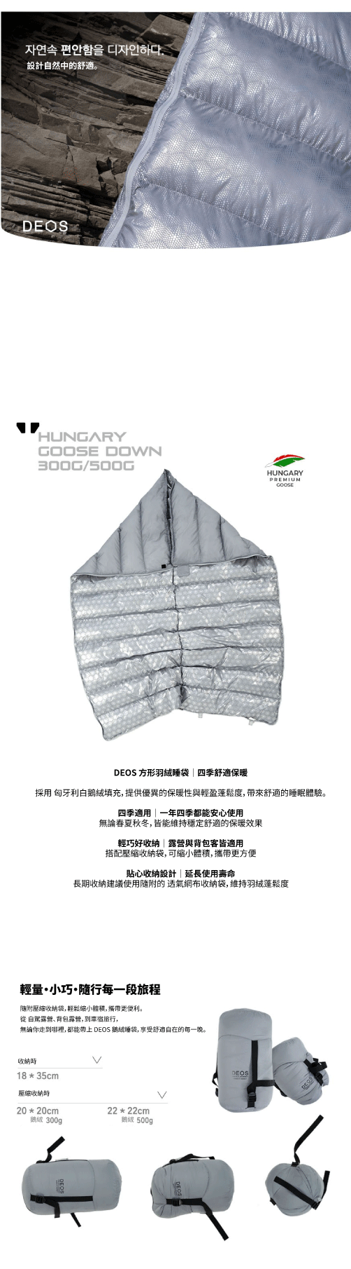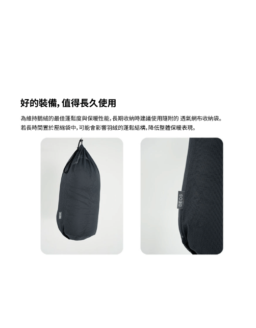 採用 匈牙利頂級鵝絨填充,保暖性極佳、重量輕盈
