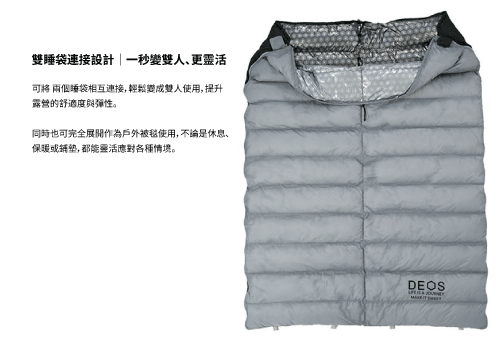 可與同款睡袋 拼接使用,靈活組合成雙人睡袋