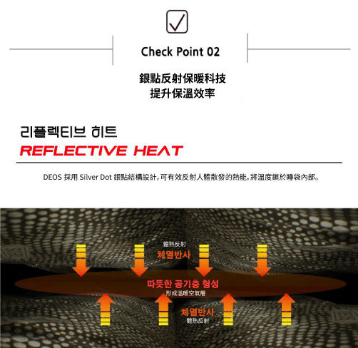 內層具 反射熱塗層,有效提升體溫保留效果