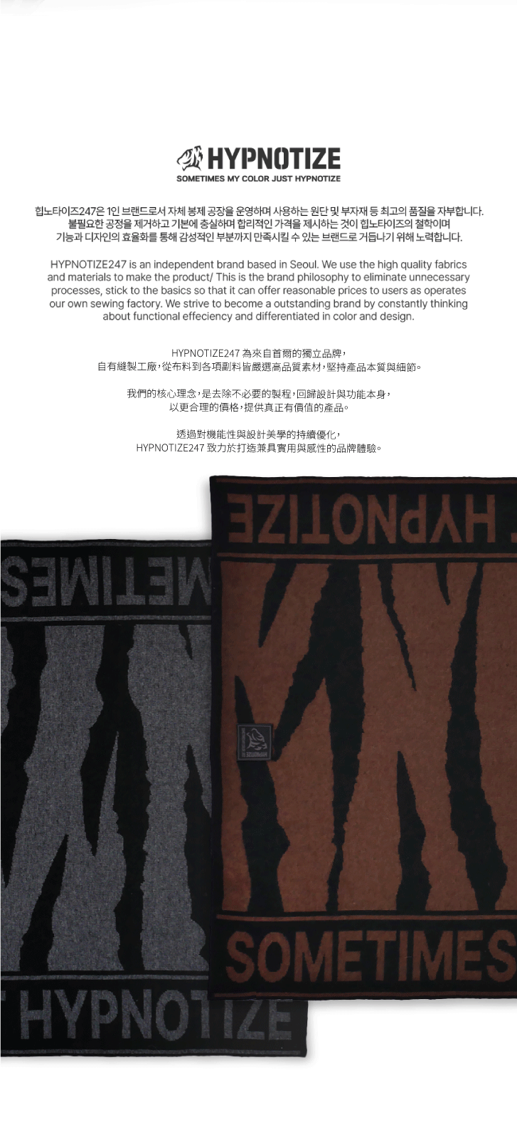 韓國品牌 HYPNOTIZE 自營縫製工廠生產,重視用料與細節,兼顧設計與實用性。
