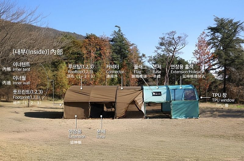 支援與 Extension、Connector 等配件模組式連接,依需求擴展帳篷空間或打造不同露營配置。