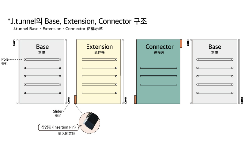 (J.tunnel Sand Base 本體+Extension Holejack 延伸帳+暖爐使用示意圖)