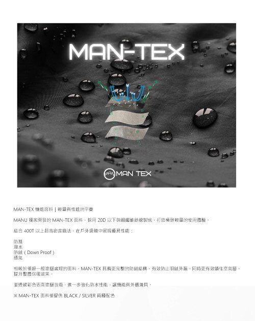 | 材質 | MAN TEX™ 專用布料、3M SCOTCHLITE™ 反光材質 |