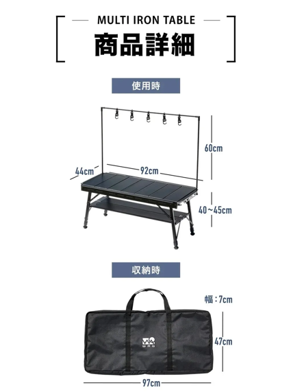 內容物:工作台本體/鋁頂板*7/收納袋/燈籠掛架/吊掛架/鋁製銅板*2/安裝用螺絲釘/使用說明書